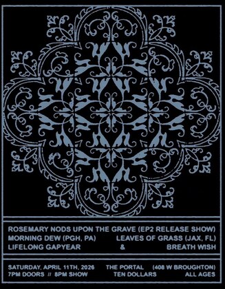 Rosemary Nods Upon The Grave (EP2 Release Show) Morning Dew (PHG, PA) Leaves of Grass (Jax, FL) Lifelong Gapyear Breath Wish